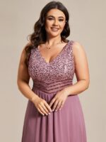Elegant Paillette & Chiffon V-neck A-line Sleeveless Plus Size Formal Evening Dresses