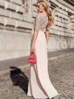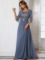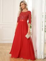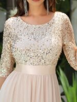 Elegant Round Neckline Long Sleeves Sequin Evening Dress