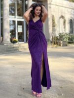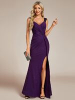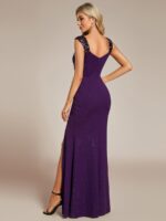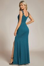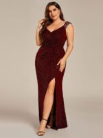 Make a dazzling entrance in this Glitter V-Neck High Slit Sequin Shoulder Strap Evening Dress. The shimmering sequins create a show-stopping look, while the v-neckline and high slit add a touch of sophistication. Whether you’re attending a fancy cocktail party, a wedding reception, or a special celebration, this dress will make you the center of attention and leave a lasting impression.