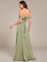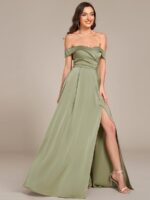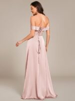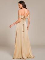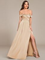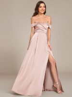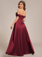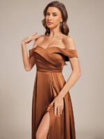 Off Shoulder Lace-Up High Slit Satin Bridesmaid Dress