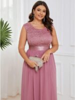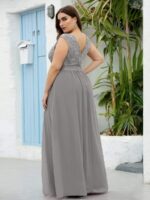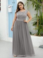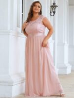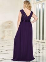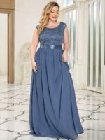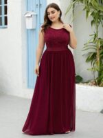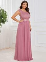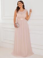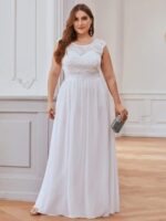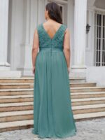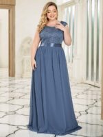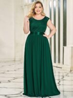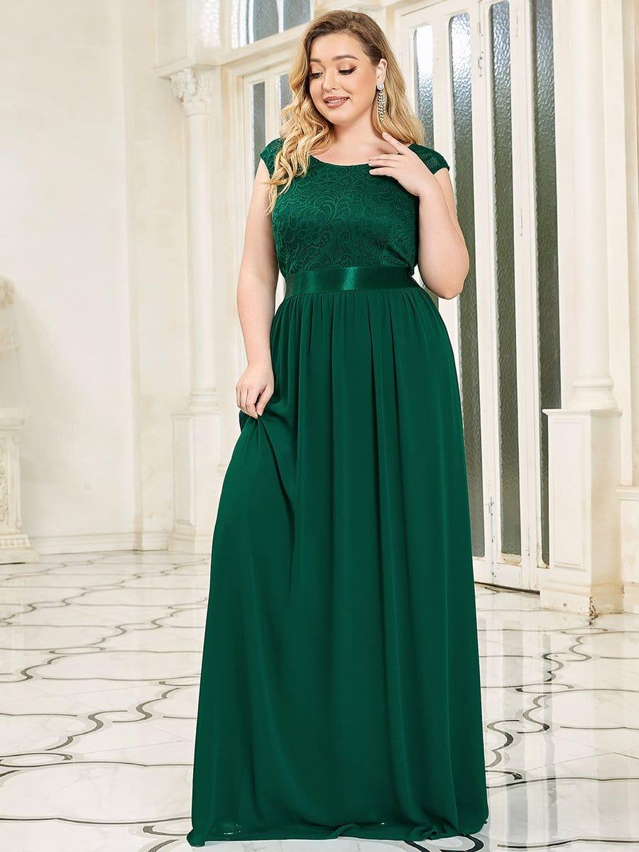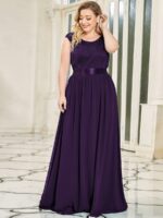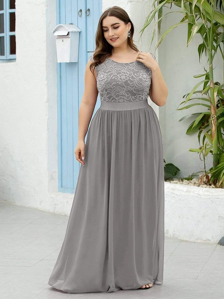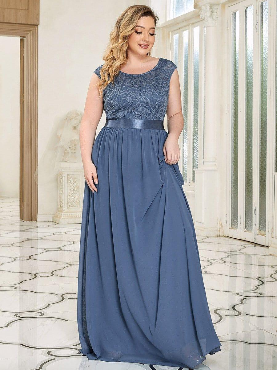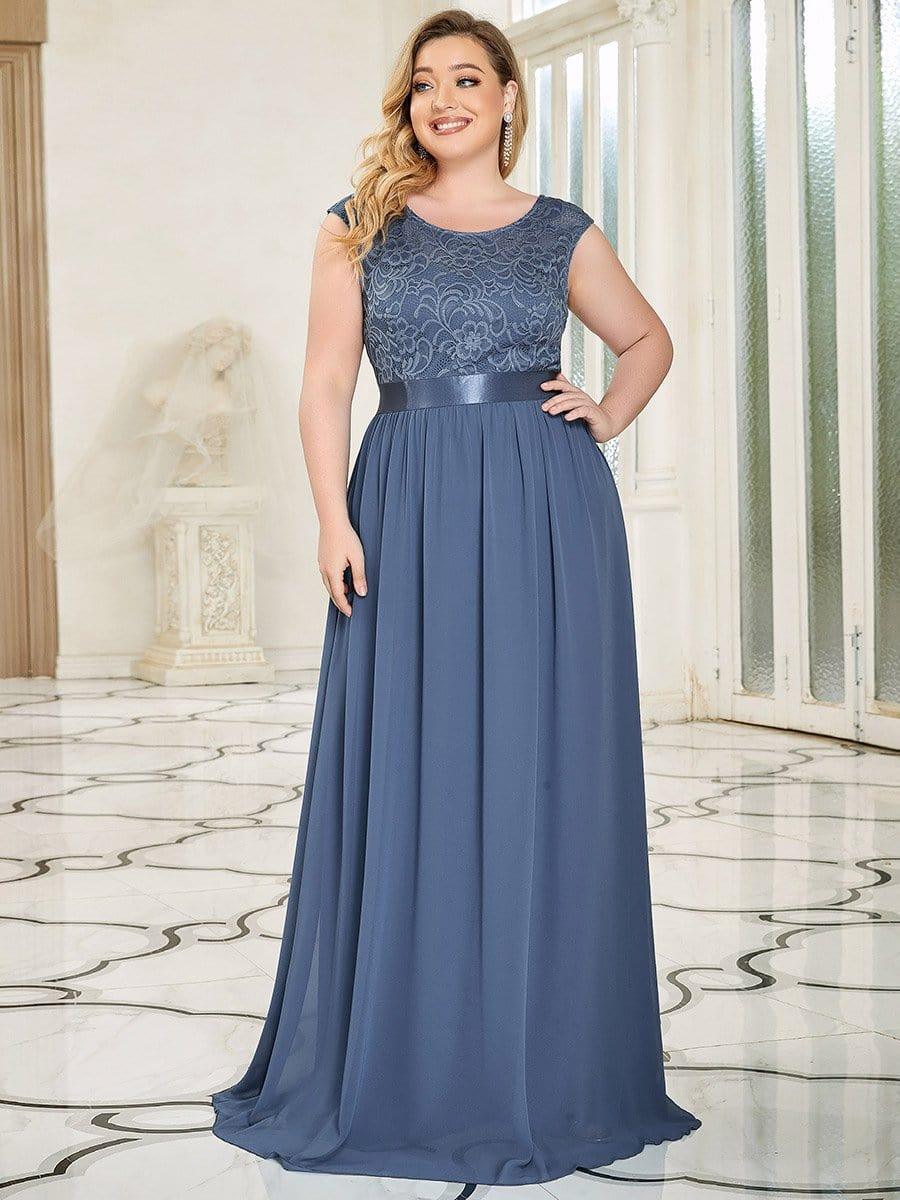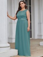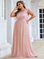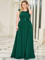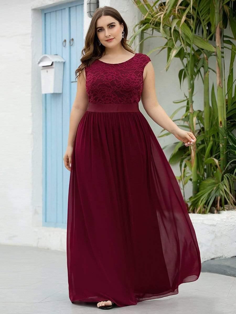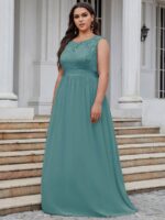 Plus Size Classic Round Neck V Back A-Line Chiffon Bridesmaid Dresses with Lace