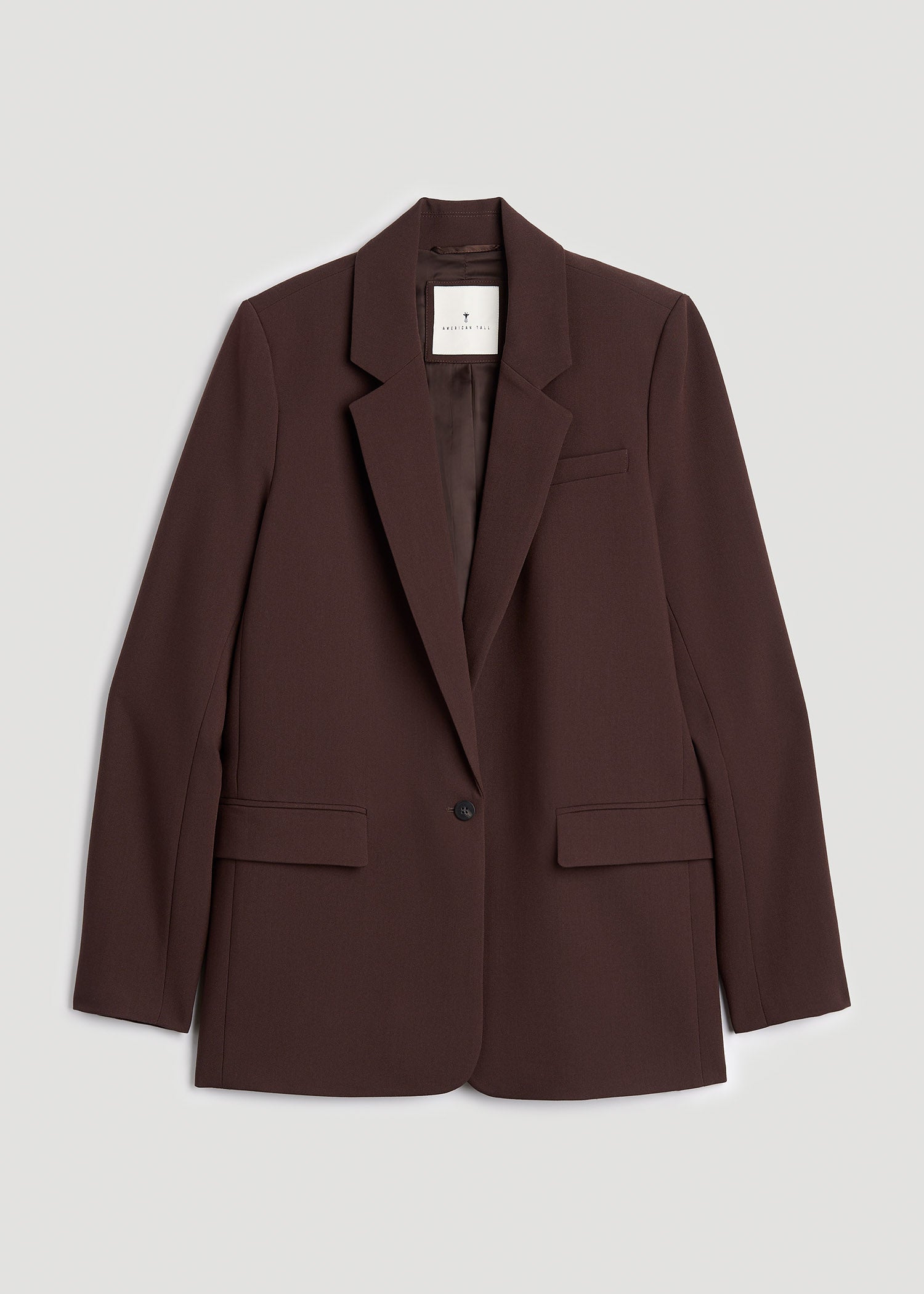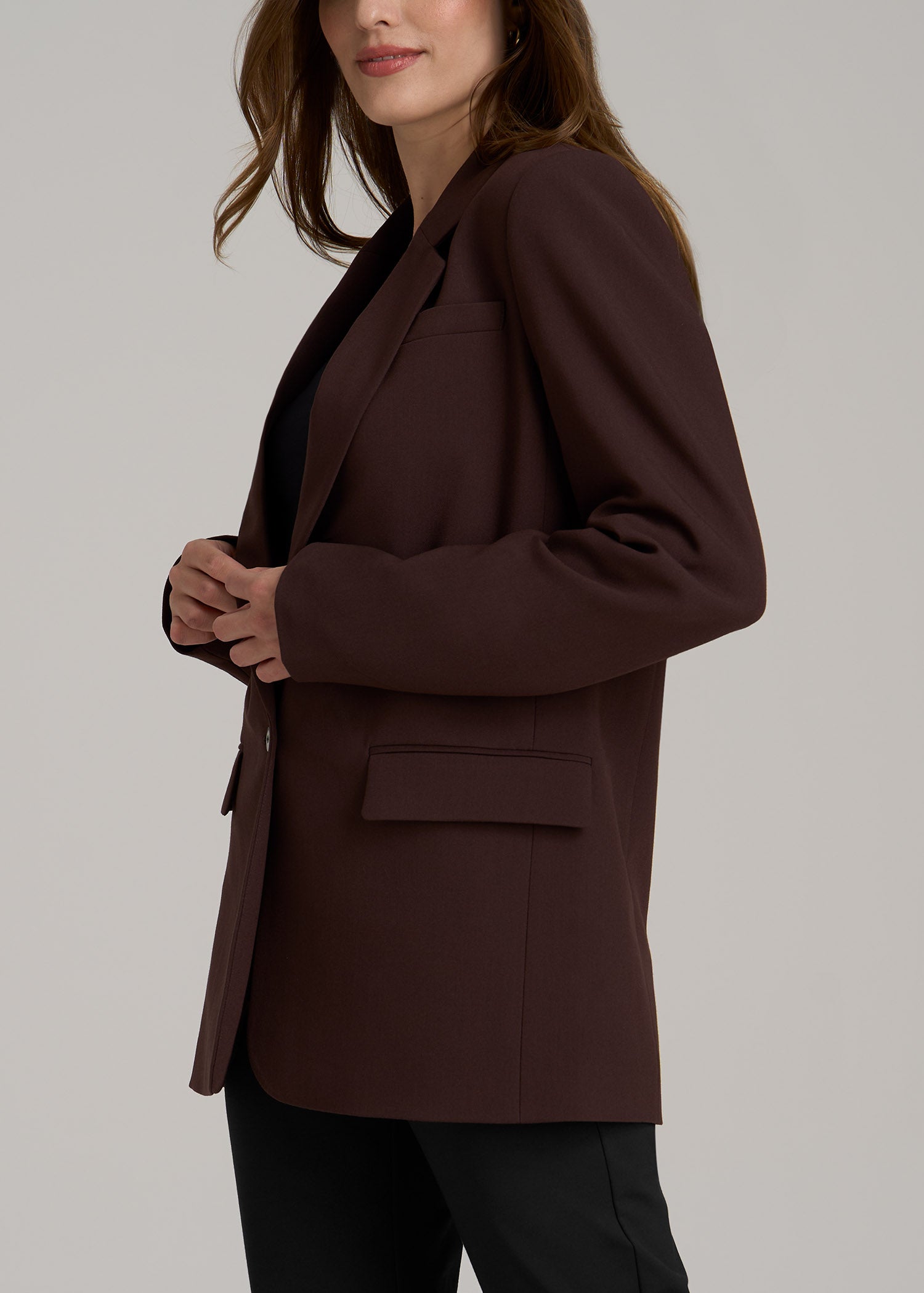 Boyfriend Fit Single-Button Blazer for Tall Women in Chestnut