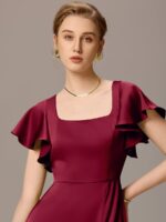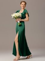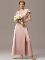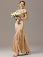 Grace meets elegance in this satin maxi bridesmaid dress. The square neckline offers a modern yet timeless charm, while the delicate short sleeves add a soft, romantic touch. Flowing ruffled details bring movement and sophistication, making this dress a stunning choice for weddings, formal events, and special celebrations.