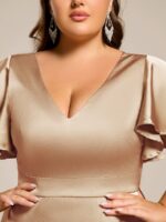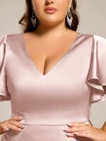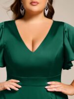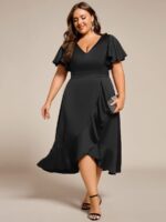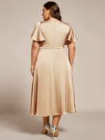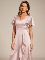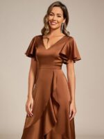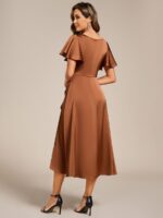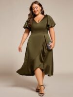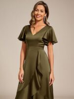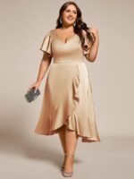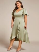V-Neck Satin Midi Wedding Guest Dress with Ruffled Skirt