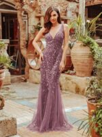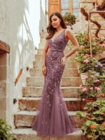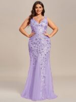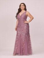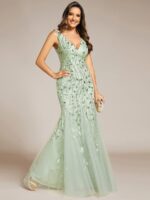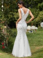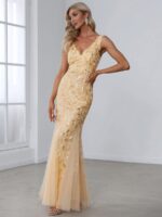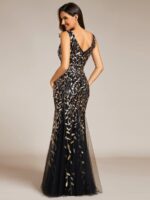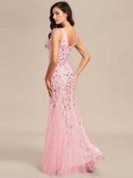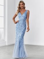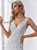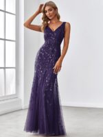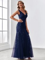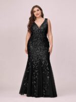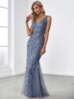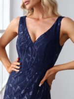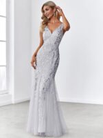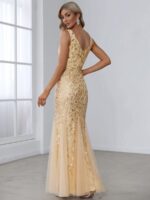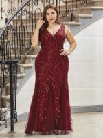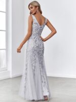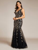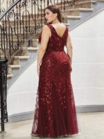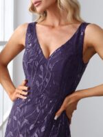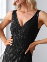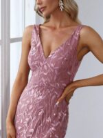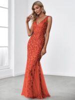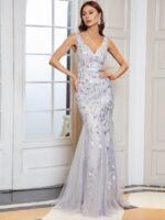 Women’s Double V-Neck Fishtail Sequin Evening Dress