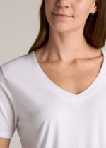 More than just a regular tee. This women’s tall V-neck t-shirt has been specially designed just for you and is an everyday basic you’ll want to wear year-round. Having wardrobe staples that fit perfectly is a luxury that most tall women don’t have, which is why we exclusively design all our shirts for tall women between 5’9” and 6’6”. The rounded hem will end well below your hips where it’s supposed to and the scoop V neckline is ultra-flattering on any shape. This tee has a relaxed fit that will drape your frame beautifully and hug your curves in all the right places so you can leave the days of baggy tops behind. It’s a must-have for every tall woman’s wardrobe that you can wear with just about anything, from jeans to leggings, and will quickly become your go-to tee.