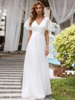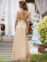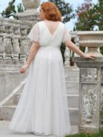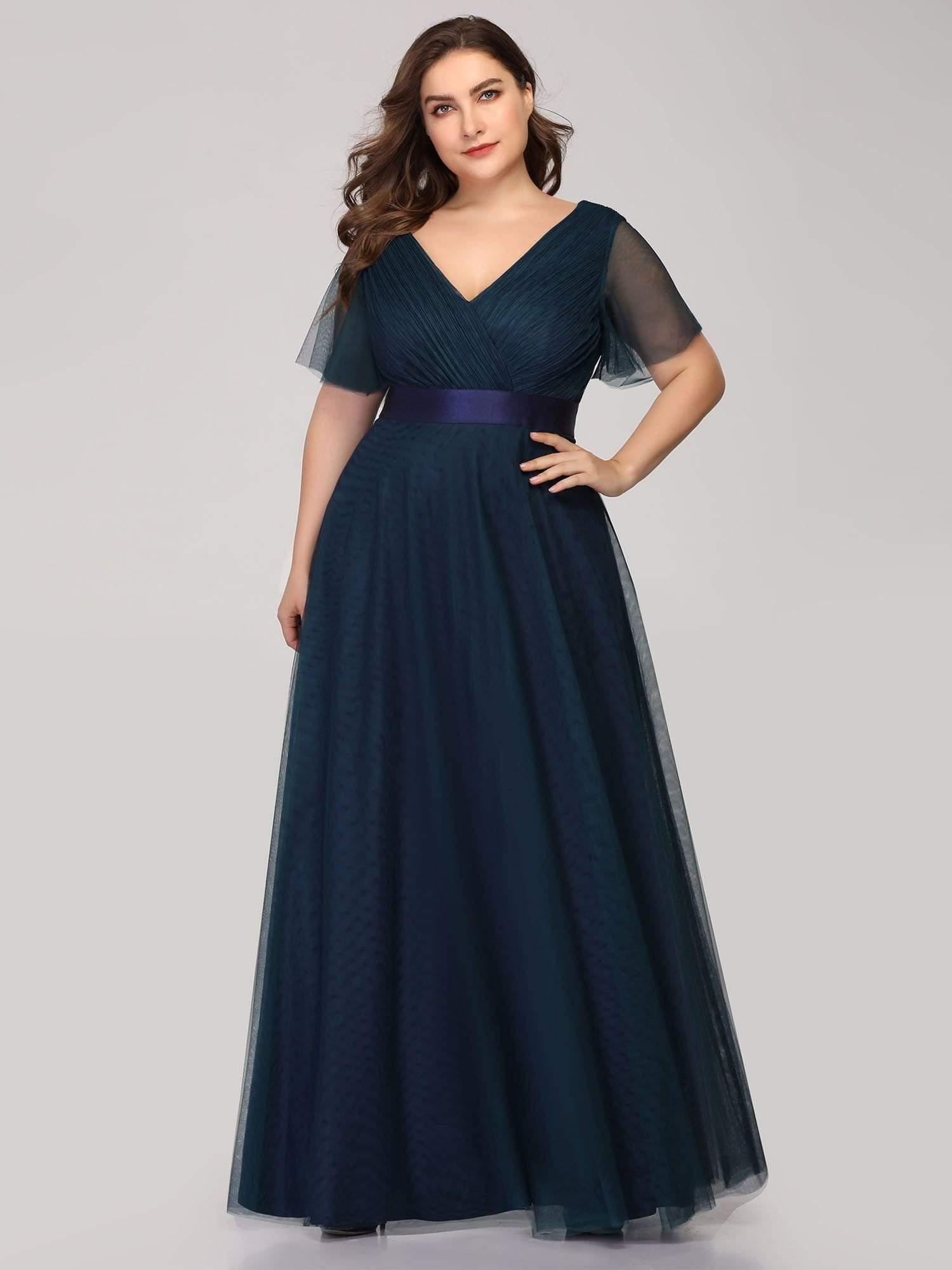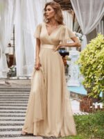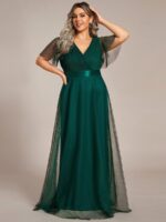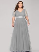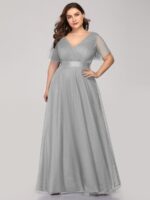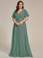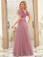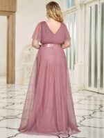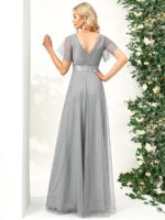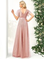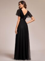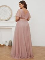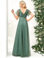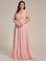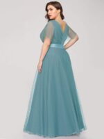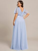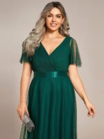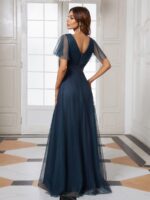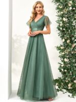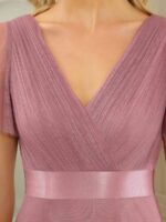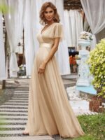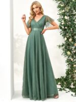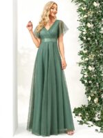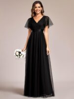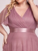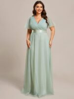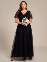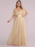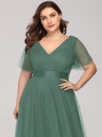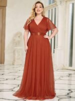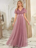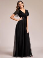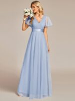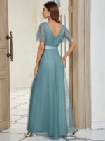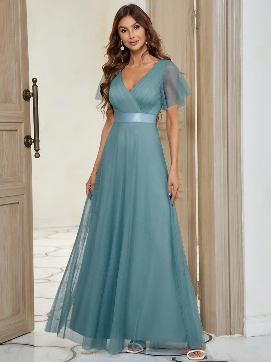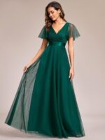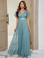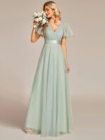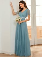 This romantic short sleeves bridesmaid dress features a deep V neckline, empire waist, flutter sleeves, and subtle tulle hemline. It is friendly to most body types. If you want to have an flowy tulle bridesmaid dress with short sleeve, then this maxi tulle bridesmaid dress with sleeves is perfect for you. We think this elegant short sleeve bridesmaid dress is perfect for all formal occasions, from evening party, cocktail, weddings to prom, homecoming and graduation!