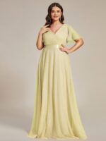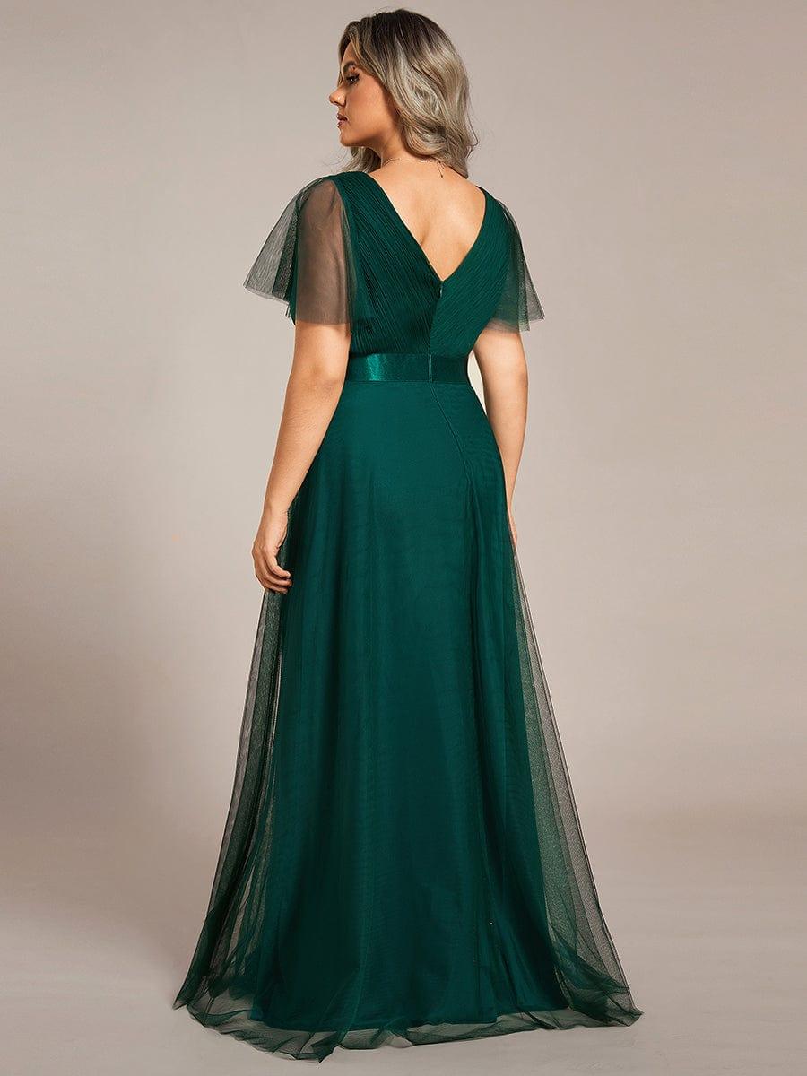 Double V-Neck Floor-Length Short Sleeve Tulle Bridesmaid Dresses